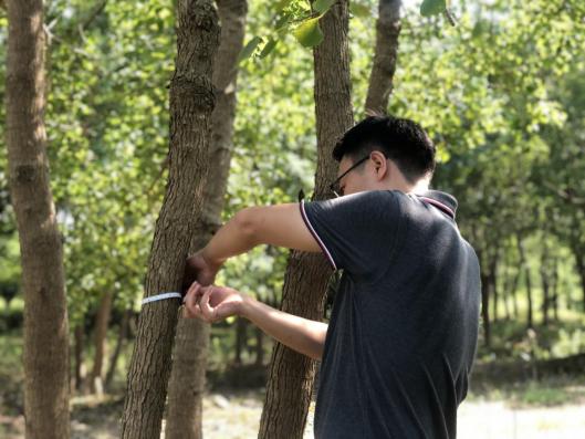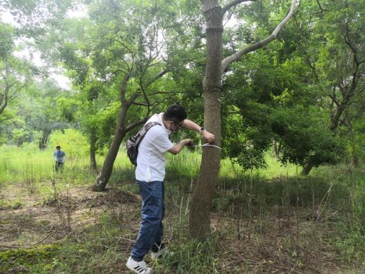 近期“秋老虎”發(fā)威,炎炎烈日、驕陽(yáng)似火,林中蚊蟲叮咬,地面起伏、時(shí)有溝壑。但沒(méi)有一個(gè)人叫苦喊累,認(rèn)真的用樹尺測(cè)量每一棵苗木,并詳細(xì)記錄。至太陽(yáng)西下,大家用腳丈量了500多畝田地,測(cè)量了10000余株苗木?!巴陜善诘拿缒颈P點(diǎn),我要盤四五天才能盤點(diǎn)完,現(xiàn)在有大家的幫忙,不到一天就完成了,工作效率大大提高了。”苗圃負(fù)責(zé)人高興地說(shuō)。