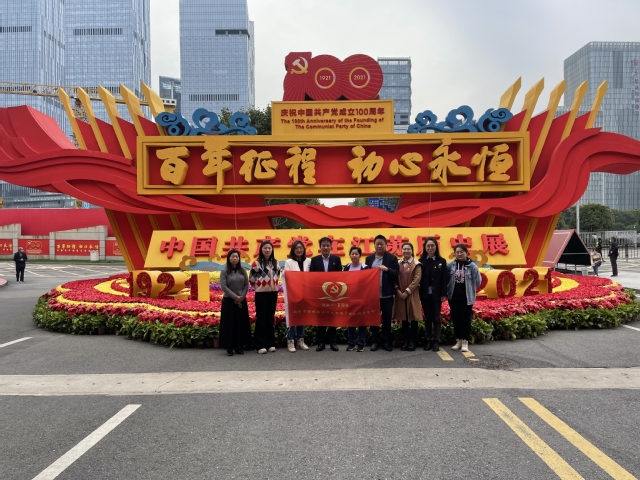 會后,大家集體前往南京國際博覽中心參觀“百年征程 初心永恒——中國共產(chǎn)黨在江蘇歷史展(1921-2021)”,展覽運用圖片圖表、檔案文獻、文物實物、場景模型及新媒體手段,全方位、全過程地展現(xiàn)了中國共產(chǎn)黨的歷史偉業(yè),講述了在黨的領導下,江蘇在百年奮斗中取得的輝煌成就。