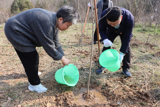 草長(zhǎng)鶯飛,春意盎然?;顒?dòng)現(xiàn)場(chǎng),參加活動(dòng)人員兩人一組,拿起鐵鍬,分工協(xié)作。挖土、放苗、填土、壓實(shí)……齊心協(xié)力,弘揚(yáng)人人愛綠植綠護(hù)綠的文明精神。