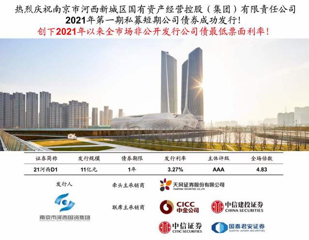 此次發(fā)行由天風證券股份有限公司牽頭,四家證券公司聯(lián)席組成承銷團,河西集團財務管理部憑借多年的發(fā)債經(jīng)驗,參與市場調(diào)研,拓展了工作思路,調(diào)整債務結構。