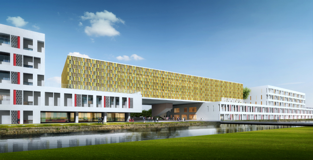 河西南部(5#)九年一貫制學(xué)校項目,位于南京市建鄴區(qū)友誼街以西、鄴城路以南,毗鄰南京兒童醫(yī)院。項目總建筑面積90121.66平方米,其中地下建筑面積40237.74平方米,地上建筑面積49883.92平方米;項目整體地下1層,地上5層,建筑高度22.80米。項目規(guī)劃建設(shè)6軌36班小學(xué)和10軌30班初中,設(shè)計有機(jī)動車位861輛,非機(jī)動車位1200輛。