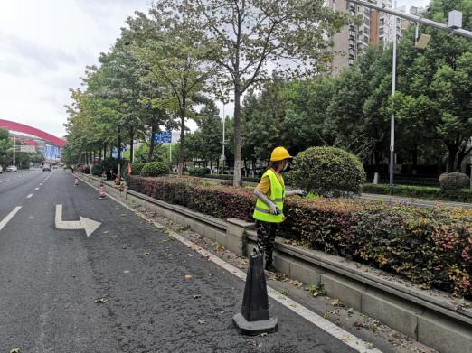 在技術(shù)人員簡(jiǎn)要講解了修剪技術(shù)要點(diǎn)和評(píng)分標(biāo)準(zhǔn)后,比賽正式拉開(kāi)帷幕,公司的7支修剪隊(duì)伍約20余名園林工人做好安全措施,來(lái)到競(jìng)賽路段開(kāi)始修剪作業(yè)。大家爭(zhēng)分奪秒地修剪綠籬、球類灌木,規(guī)范、靈活地使用綠籬機(jī)和綠籬剪,及時(shí)清掃修剪落葉,造型美觀、平整有序、棱角分明的綠籬逐漸形成,展現(xiàn)了園林公司綠化養(yǎng)護(hù)人的工匠技能。為持續(xù)推進(jìn)黨建工作與業(yè)務(wù)工作相融合,將“鑄紅心·享園林”黨建品牌培育工作落到實(shí)處,公司黨支部組織黨員參與現(xiàn)場(chǎng)評(píng)分,黨員們虛心向?qū)I(yè)技術(shù)人員學(xué)習(xí)綠籬修剪技術(shù)要點(diǎn)、評(píng)分要點(diǎn),認(rèn)真觀察7支修剪隊(duì)伍的修剪過(guò)程,從安全施工、文明施工、操作規(guī)范及修剪質(zhì)量等方面進(jìn)行現(xiàn)場(chǎng)考評(píng)。