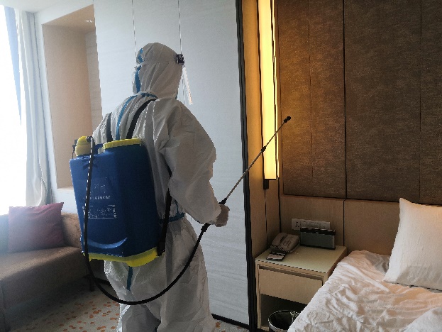 截至8月22日所有客人離店時,按照相關(guān)防疫要求,指揮部醫(yī)療組共為集中醫(yī)學觀察市民朋友及他們高頻接觸物品、工作人員,核酸采樣總計13592人次,檢測結(jié)果均為陰性!順利送別住店觀察的大部隊,專業(yè)的消殺組工作人員立刻對客房和所有公共區(qū)域進行全面消殺,并于當天下午結(jié)束,國青酒店終于圓滿完成了集中醫(yī)學觀察人員的保障工作。