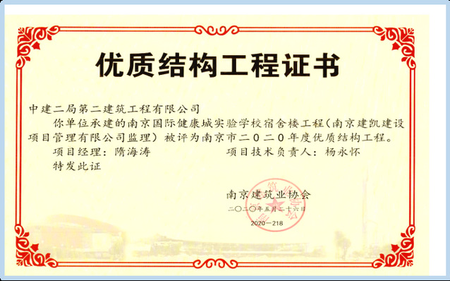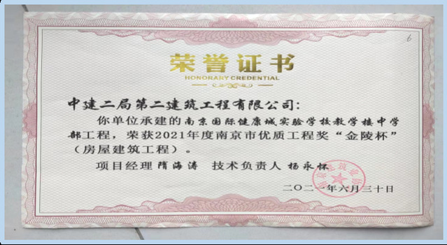 2021年12月6日,中國施工企業(yè)管理協(xié)會公布2020-2021國家優(yōu)質工程獎獲獎名單,河西集團新城公司所屬南京河西工程項目管理有限公司代建的南京國際健康城實驗學校項目喜獲該獎項。國家優(yōu)質工程獎設立于1981年,是經國務院確認的我國工程建設領域設立最早,規(guī)格最高,跨行業(yè)、跨專業(yè)的國家級質量獎。