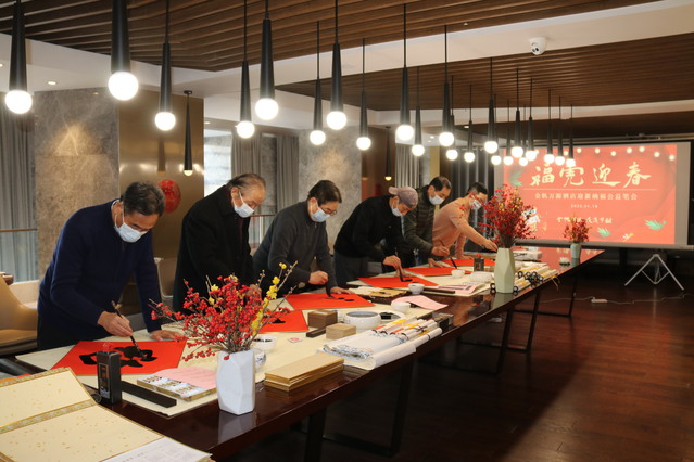 寫春聯(lián)、貼春聯(lián)是中國春節(jié)的傳統(tǒng)習俗,也是辭舊迎新過大年的一種象征。為弘揚中華書法藝術與傳統(tǒng)節(jié)日文化,給市民、住店客人送上新春祝福。近日,河西集團青奧城公司金帆萬源酒店開展“福虎迎春”2022新年納福公益筆會,來自南京的書畫名家應邀出席。