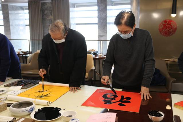 活動現(xiàn)場翰墨飄香,福氣滿堂。書畫家們飽含熱情,大家擺開書案,鋪開大紅紙,凝神提筆,揮毫潑墨。