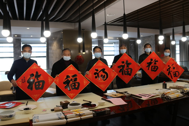 “東風化雨山山翠,政策歸心處處春”;“行鴻運年年興旺,迎百福歲歲平安”……一幅幅蒼勁有力的春聯(lián),一句句吉祥喜慶的祝福,一個個手寫的福字,將迎接新春的喜慶傳給大家。