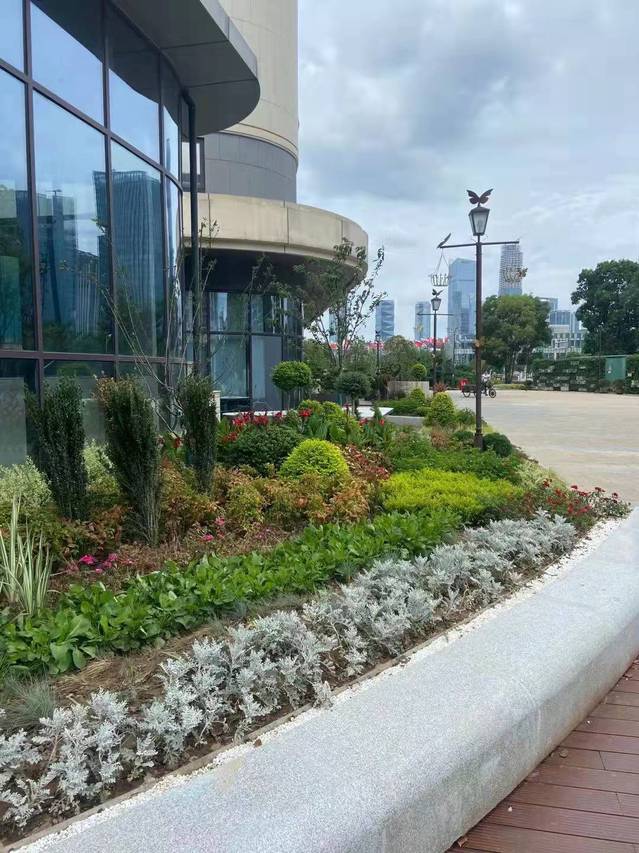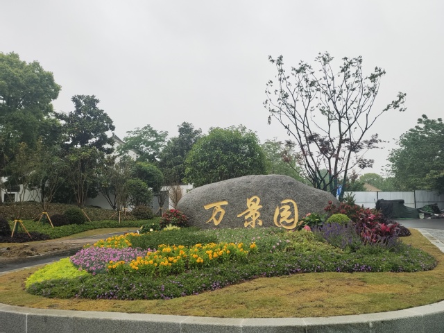 萬(wàn)景園北入口項(xiàng)目將原始花壇改造成弧形整石花壇,常夏石竹、八仙花、女貞球等彩葉花灌木鋪滿在景觀石的四周,形成植物品種豐富、層次分明的小型花境。入口處增設(shè)標(biāo)有“萬(wàn)景園”字樣高達(dá)12米的立牌,高大醒目,與魚嘴公園、青年文化公園、綠博園形成了統(tǒng)一的濱江風(fēng)光帶入口標(biāo)識(shí)。