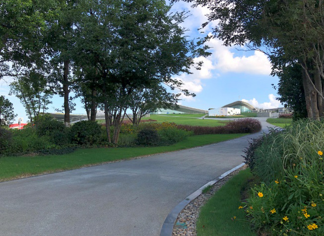 綠博園東入口項(xiàng)目在綠植選用上注重運(yùn)用彩葉樹(shù)種,中山紅、佛甲草、南天竹等彩葉喬灌木,襯托在綠茵茵的草坪上,增強(qiáng)了觀賞效果。大面積的花崗巖鋪裝,弧形路牙石花壇、多色植物搭配,形成了空間開(kāi)闊、環(huán)境優(yōu)美的公園出入口景觀。