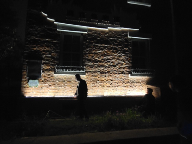 生態(tài)展覽館周邊綠化提升,改善了展館周邊過(guò)密的原有植物,搭配觀賞草、姬十二單、玉簪等花灌木豐富了植物配置。房屋四周地面設(shè)置LED洗墻燈投射于墻面,完美勾勒建筑輪廓,提升了夜間景觀效果。