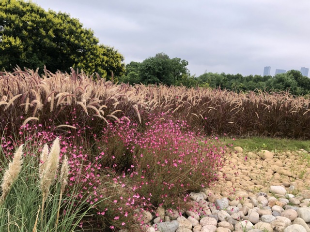 紫金文創(chuàng)園屋頂花園提升項(xiàng)目將植物配置進(jìn)行全面提檔升級(jí),把原有枯黃退化、高低不平的狗牙根草地進(jìn)行翻新整地,栽植了薄雪萬(wàn)年草,紅葉景天,粉黛亂子草、紫穗狼尾草等灌木和草本植物,既保證了屋頂承重的要求,又形成了野趣的屋頂景觀效果。