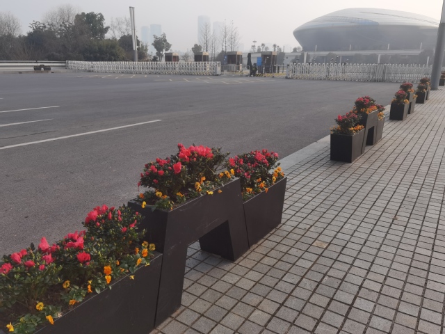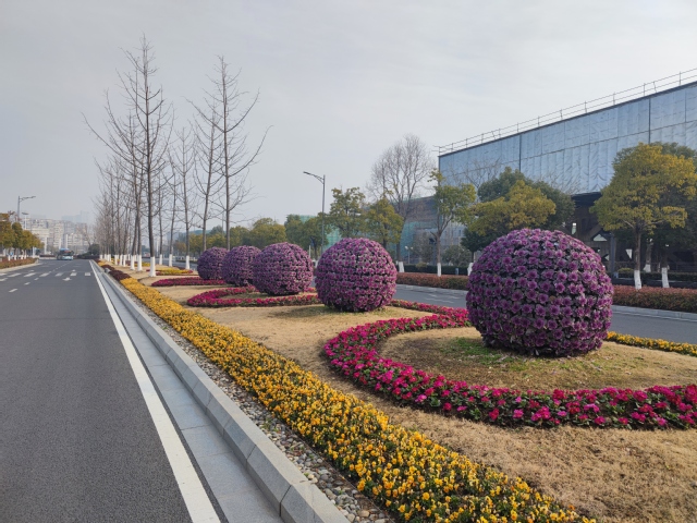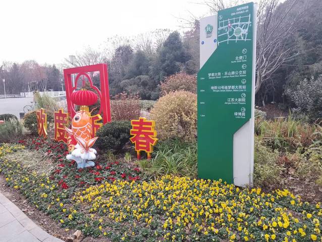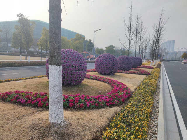 南京奧體中心北門夢(mèng)都大街人行道旁新增設(shè)一組 “歡度新春”花境式小品生態(tài)微景觀,深紫色羽衣甘藍(lán)與黃色三色堇植物的搭配,簡(jiǎn)潔明了,“鯉魚躍龍門”小品和“歡度新春”字樣的組合營(yíng)造出濃濃的年味。道路中分帶的花球換上了“新裝”,4個(gè)巨大的羽衣甘藍(lán)花球在太陽(yáng)下盡情地綻放著,烘托出了冬奧會(huì)的隆重氣氛,寓意在歡度新春佳節(jié)之際,祝愿冬奧會(huì)的奧運(yùn)健兒們能夠魚躍龍門創(chuàng)佳績(jī)。