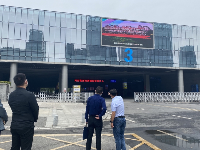 5月26日上午,市司法局黨組成員、副局長賀慶帶隊蒞臨集團就法治宣傳工作開展情況進行調研指導。在集團副總經理、黨委委員曹志堅陪同下,調研組一行先后赴國際博覽中心、青年文化體育公園、魚嘴濕地公園白鷺廣場等地,對人群集中地段的戶外大型電子顯示屏進行實地考察,現場觀看了民法典公益廣告及宣傳標語等播放情況?,F場調研后,曹志堅對集團法治文化環(huán)境及建設情況進行了詳細匯報。