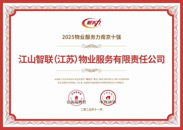 河西集團江山智聯物業(yè)憑借卓越的服務品質與前瞻的戰(zhàn)略布局,一舉斬獲2025南京國有物業(yè)服務力領先企業(yè)TOP1、2025江蘇省服務力市場運營領先企業(yè)TOP3、2025物業(yè)服務力南京十強、2025物業(yè)服務力江蘇省三十強、2025華東區(qū)域物業(yè)服務力百強企業(yè)、五項行業(yè)重磅榮譽。